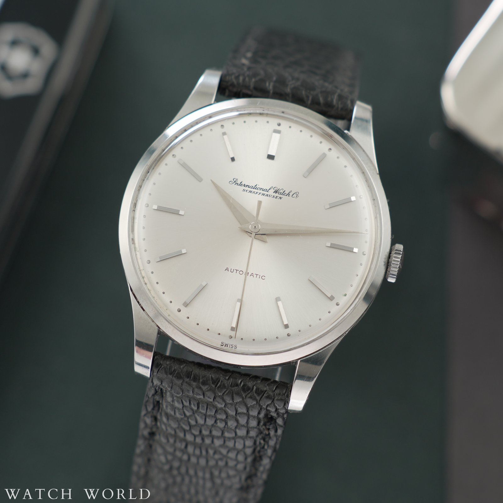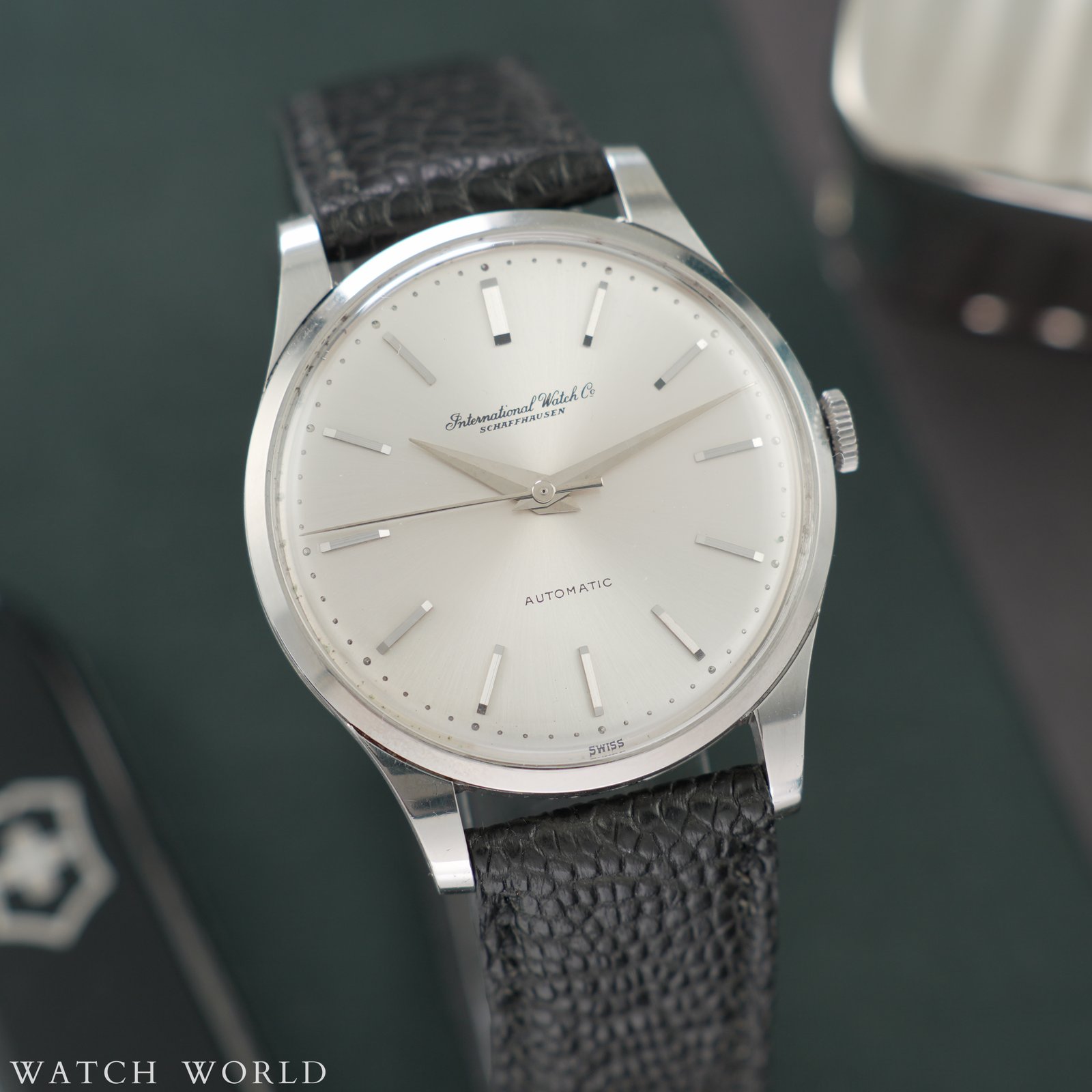 IWC Schaffhausen Calatrava cal. 853 to jeden z najbardziej ponadczasowych klasycznych designów w historii. Model ten w charakterystycznej kopercie ze smukłymi, długimi uszami dopełniony przez wskazówki typu dauphine oraz indeksy typu „long” bez lumy i okienka daty tworzy razem piękna, symetryczną całość. Przejrzystą i czytelną a przy tym wyrafinowaną. Rozmiar koperty 35mm bez koronki. W środku zegarka pracuje legendarny mechanizm automatyczny cal. 853 z naciągiem Alberta Pellatona. Szeroko uznawany za jeden z najlepszych mechanizmów automatycznych w historii, słynący z niezawodności i wysokiej precyzji mimo upływu lat. Mechanizm świeżo po przeglądzie, 12 miesięcy gwarancji. Tarcza w kolorze srebrnym ze szlifem słonecznym zachowana w pełni oryginalnym stanie. Oryginalna koronka. Zegarek sprzedawany jest na nowym, ręcznie robionym skórzanym pasku oraz dostarczany z firmowym etui podróżnym WatchWorld.