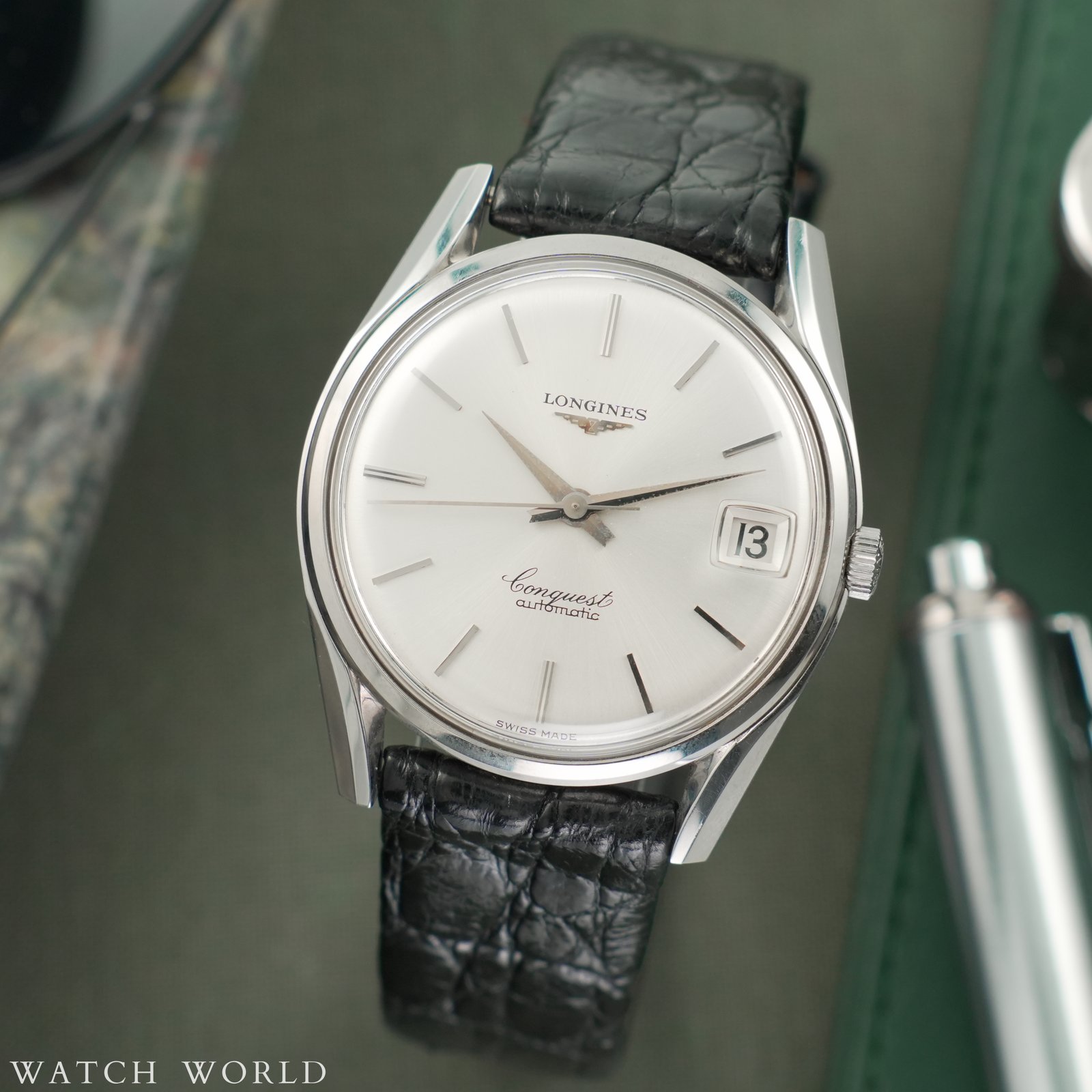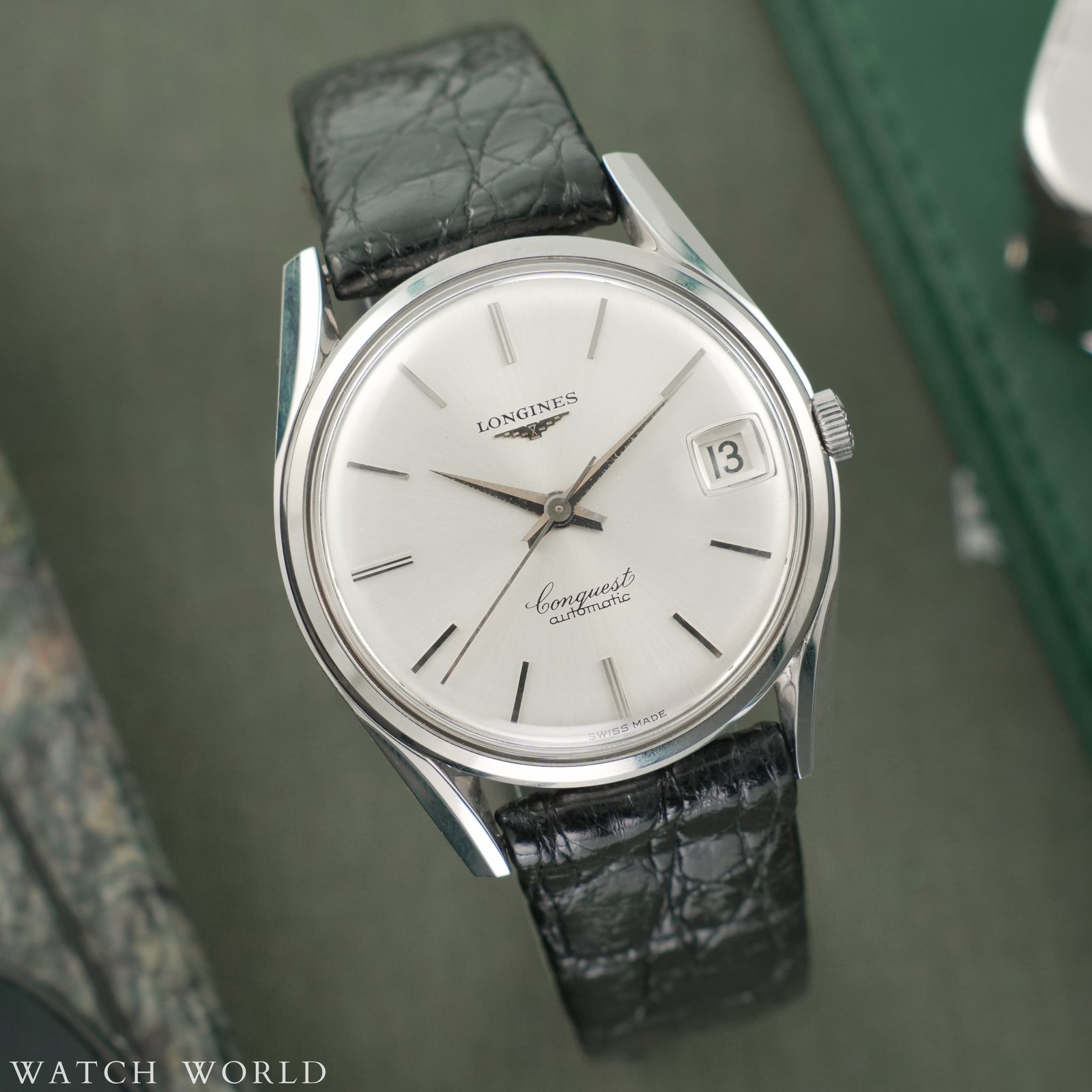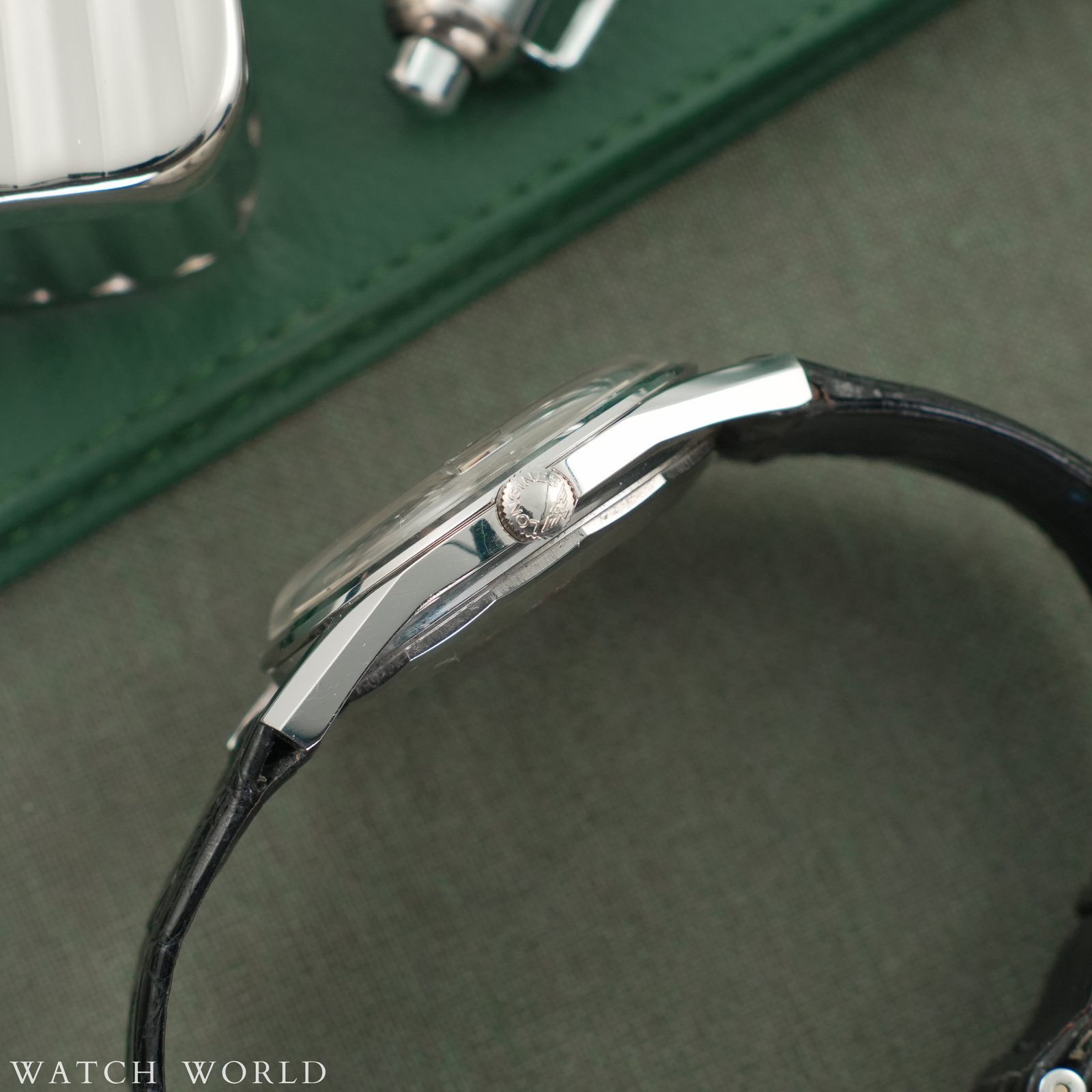 Longines Conquest Cal. 291 to bardzo ciekawy egzemplarz zegarka, który łączy w sobie klasyczne wzornictwo z delikatną nutą ekstrawagancji. Model ten wyposażony jest w automatyczny mechanizm Longines Cal. 291, uznany jako jeden z najlepszych w swojej klasie, z funkcją datownika umieszczoną na godzinie trzeciej. Zegarek posiada kopertę ze stali nierdzewnej o średnicy 36 mm, zachowaną w bardzo dobrym stanie na co wskazują ostre, fabryczne szlify koperty, tarcza z pięknymi wskazówkami i klasycznym srebrnym wykończeniem typu „sunburst”. Całość chroniona jest przez oryginalne szkło z lupką. W środku pracuje mechanizm cal. 291, jeden z najlepszych jakie Longines w tamtym okresie posiadał, cechujący się wyjątkową wytrzymałością i precyzją. Zegarek ten oferowany jest na oryginalnym pasku Longines razem z oryginalną stalową kopertą. Zegarek prawdopodobnie nie był używany, na deklu można dostrzec pozostałości okleiny ochronnej. Oferta objęta jest 4 miesięczną gwarancją WatchWorld.