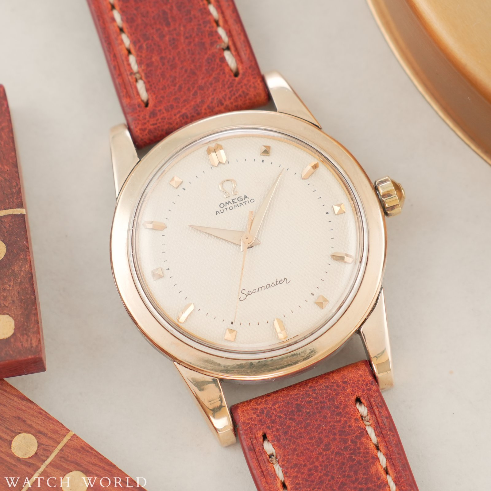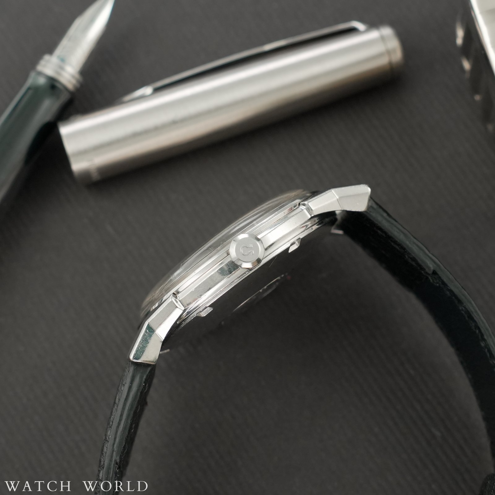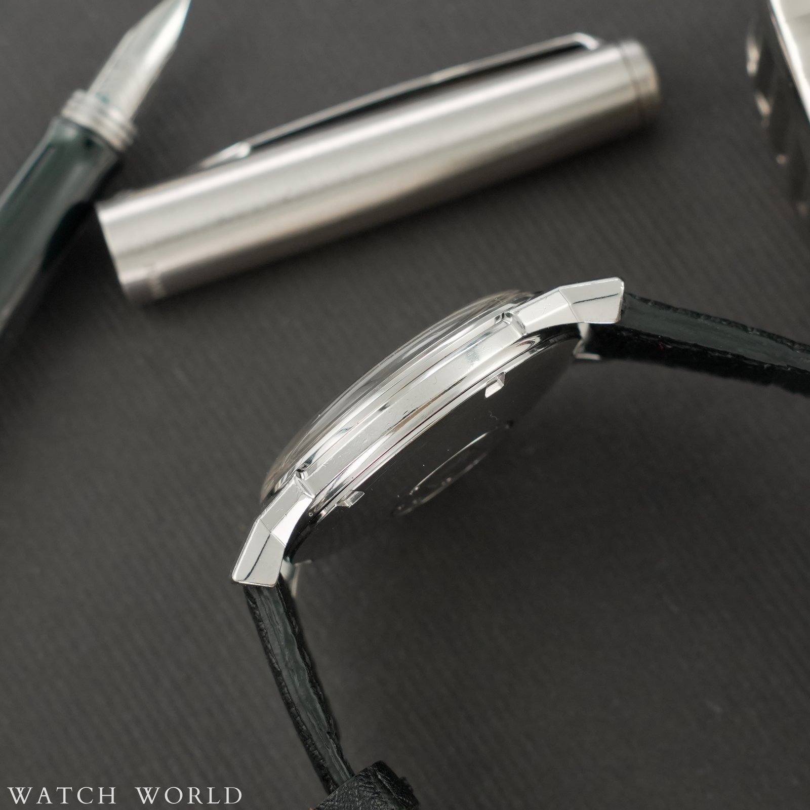 Omega Constellation ref. 168.005 cal. 561 to jeden z najbardziej poszukiwanych modeli vintage, ceniony przez rzesze zegarkowych pasjonatów na całym świecie. Ikoniczny design Geralda Genty – koperta z uszami typu dog legs z charakterystyczną koronką. Rozmiar 34mm, zachowany w bardzo dobrym stanie, oryginalne szlify. Całość uzupełnia piękna srebrna tarcza ze szlifem słonecznym. Wysokie wąskie indeksy i wskazówki typu dauphine, logowana koronka i szkiełko. W środku zegarka pracuje niezawodny mechanizm automatyczny Omega cal. 561, świezo po pełnym serwisie zegarmistrzowskim. Zegarek sprzedawany jest na nowym skórzanym pasku ze skóry strusia. Oferta objęta jest 12 miesięczną gwarancją WatchWorld oraz dostarczona z firmowym etui podróżnym. Omega Constellation dog legs to dla wielu must have i zegarek który nie schodzi z ręki.