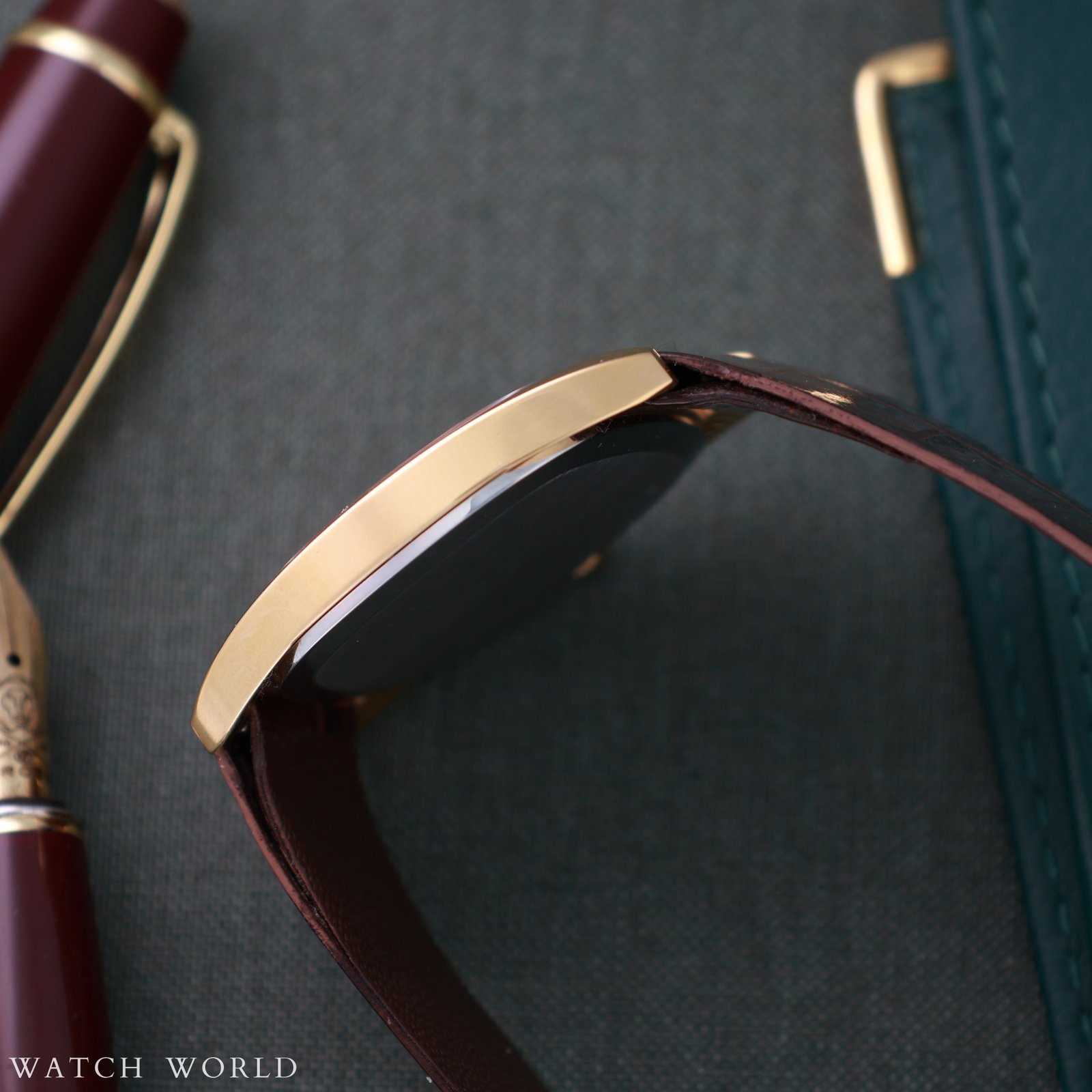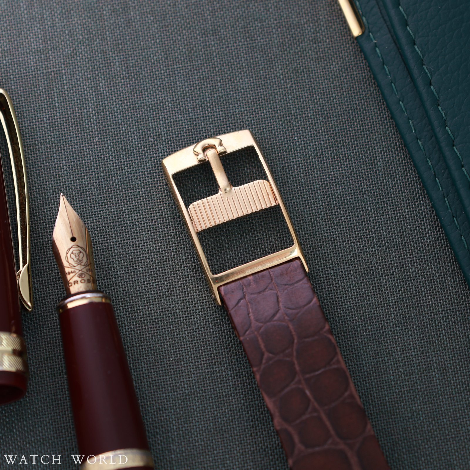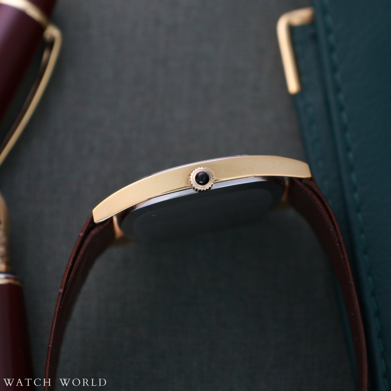 Omega De Ville Ref. 111.0132 cal. 625 to wyjątkowy przykład minimalizmu z subtelnym wyrafinowaniem lat 70. Koperta w charakterystycznym eliptycznym kształcie w rozmiarze 32mm wykonana została ze stali nierdzewnej, pozłacana, imponuje smukłością i ponadczasowym wyglądem. Dodatkowym wyróżniającym się elementem jest tarcza z rzymskimi indeksami, w kolorze złotym, i uzupełniającymi całość wskazówkami. Zegarek posiada oryginalne logowane szkło i koronkę wykończoną ozdobnym kaboszonem. W środku pracuje niezawodny ręcznie nakręcany mechanizm Omega cal. 625. Całość oferowana jest razem z oryginalnym skórzanym paskiem i złoconą klamerką. Zegarek objęty jest 12 miesięczną gwarancją WatchWorld oraz dostarczony w firmowym etui podróżnym.