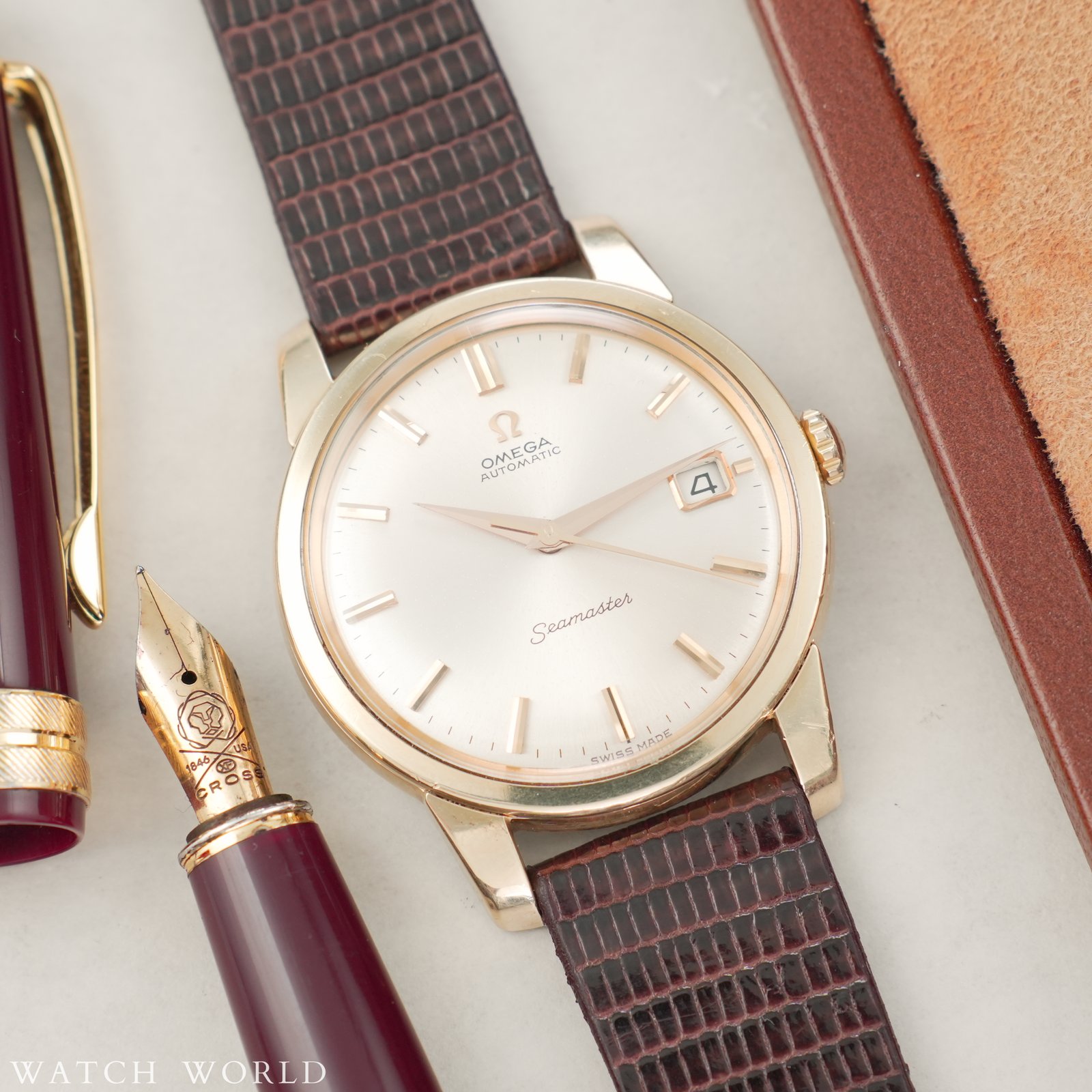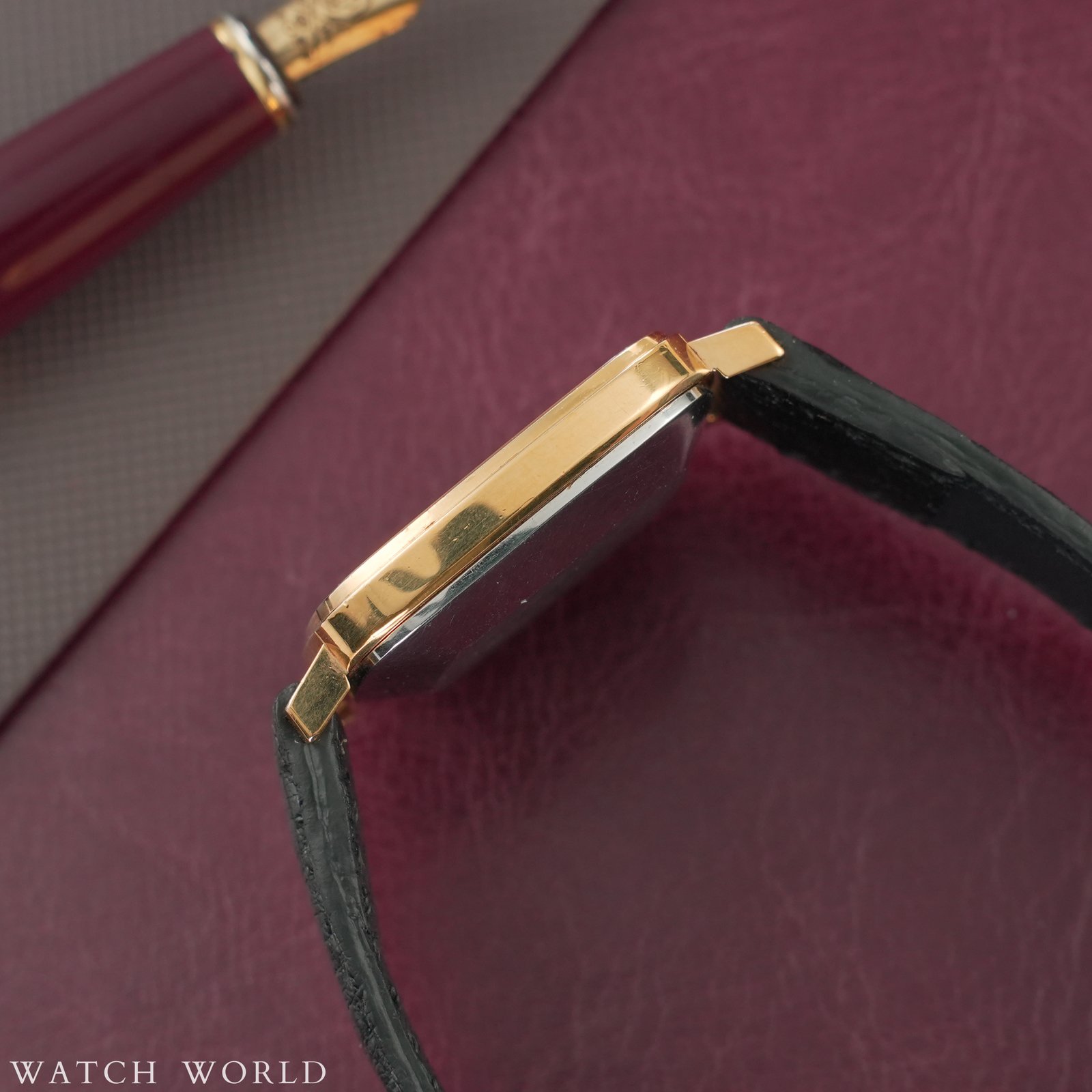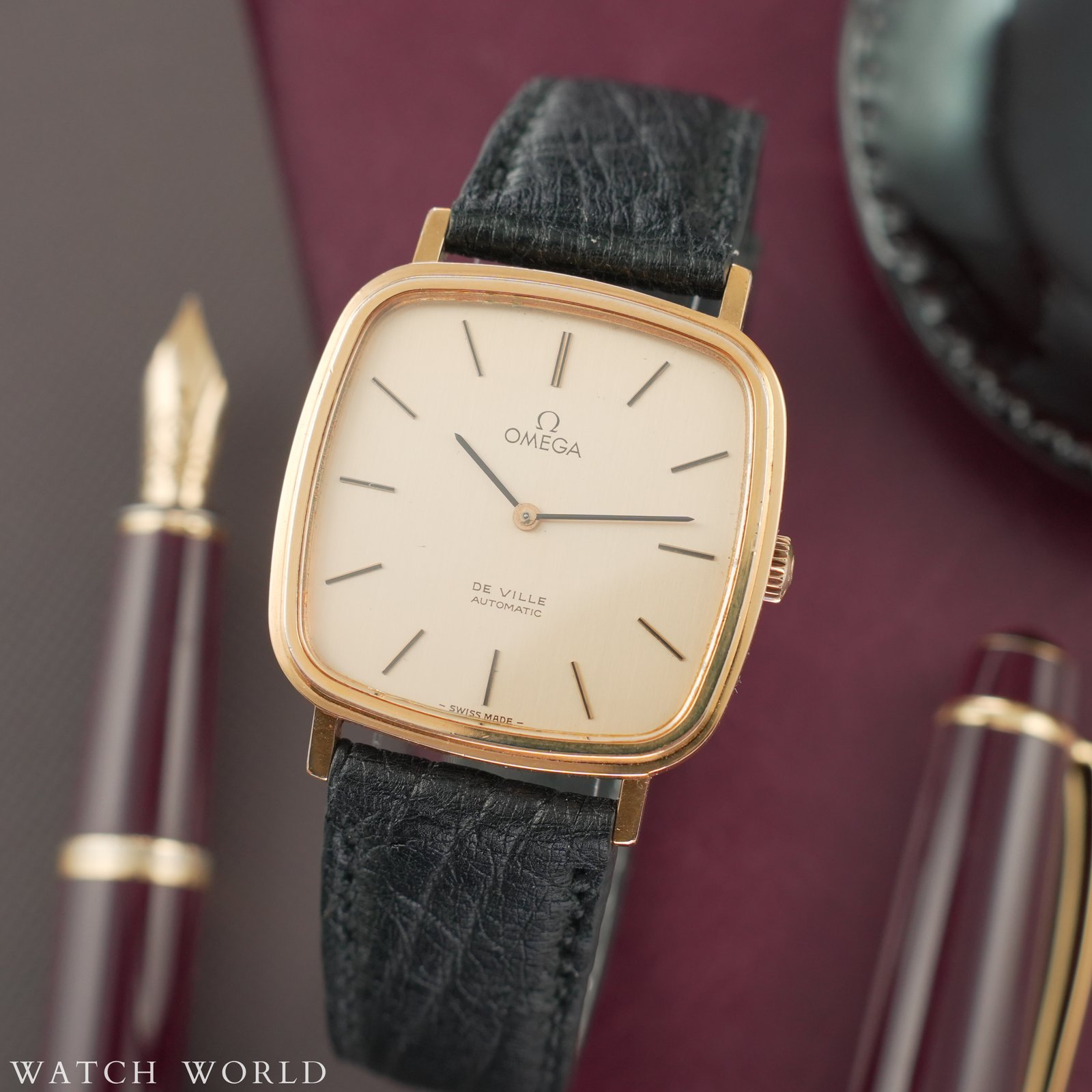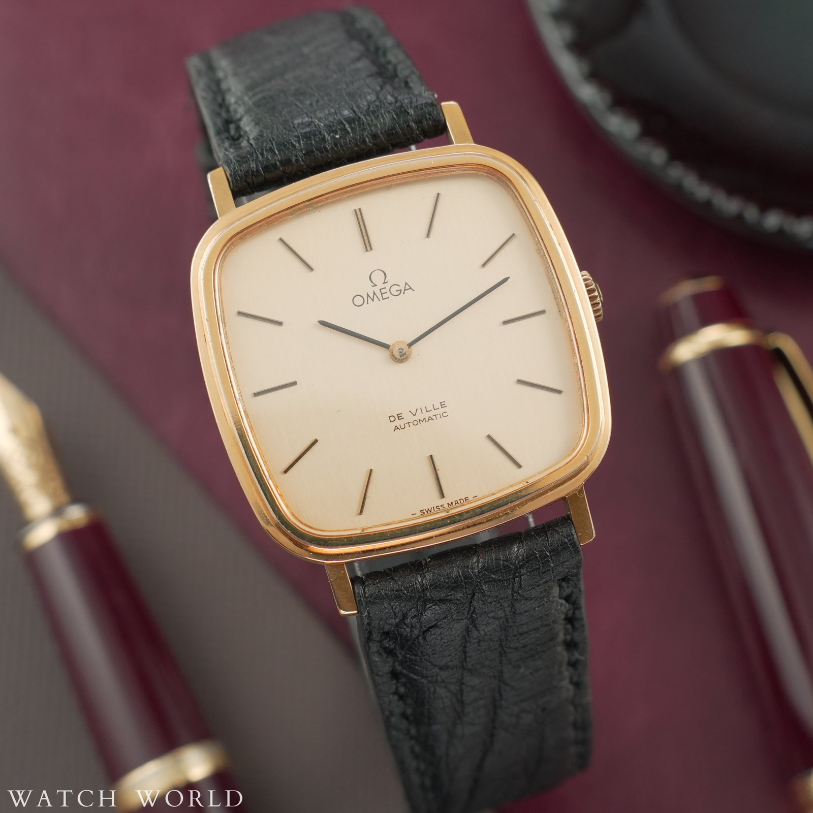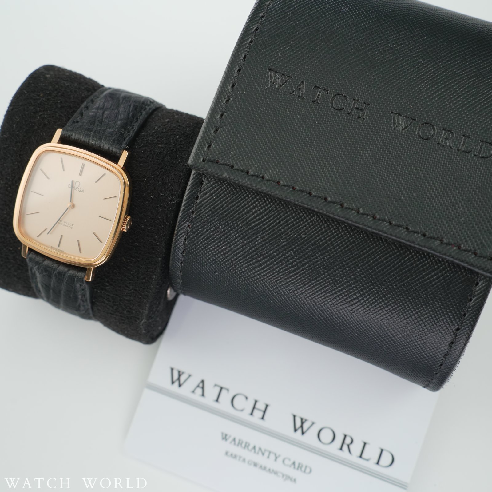 Omega DeVille 151.778 z mechanizmem cal. 711 to elegancki i technicznie wyrafinowany zegarek z lat 70, charakteryzujący się wyjątkowo smukłą konstrukcją koperty. Średnica zegarka to około 33mm bez koronki, co przy grubości zaledwie 7mm czyni go idealnym wyborem do klasycznych stylizacji. Oferowany egzemplarz zachowany jest w bardzo dobrej kondycji, tarcza w kolorze złotym posiada bardzo niewielkie ślady starzenia. Zegarek sprzedawany jest razem z nowym, ręcznie robionym skórzanym paskiem ze skóry strusia. Wewnątrz zegarka pracuje automatyczny mechanizm cal. 711, na dobrym chodzie. Mechanizm ten, to najcieńszy automatyczny mechanizm dostępny w ofercie Omegi w tamtym czasie, do dzisiaj uznawany za jeden z ciekawszych in-housowych werków tego szwajcarskiego producenta. Zegarek objęty jest 4 miesięczną gwarancją WatchWorld oraz dostarczany jest z firmowym etui podróżnym.