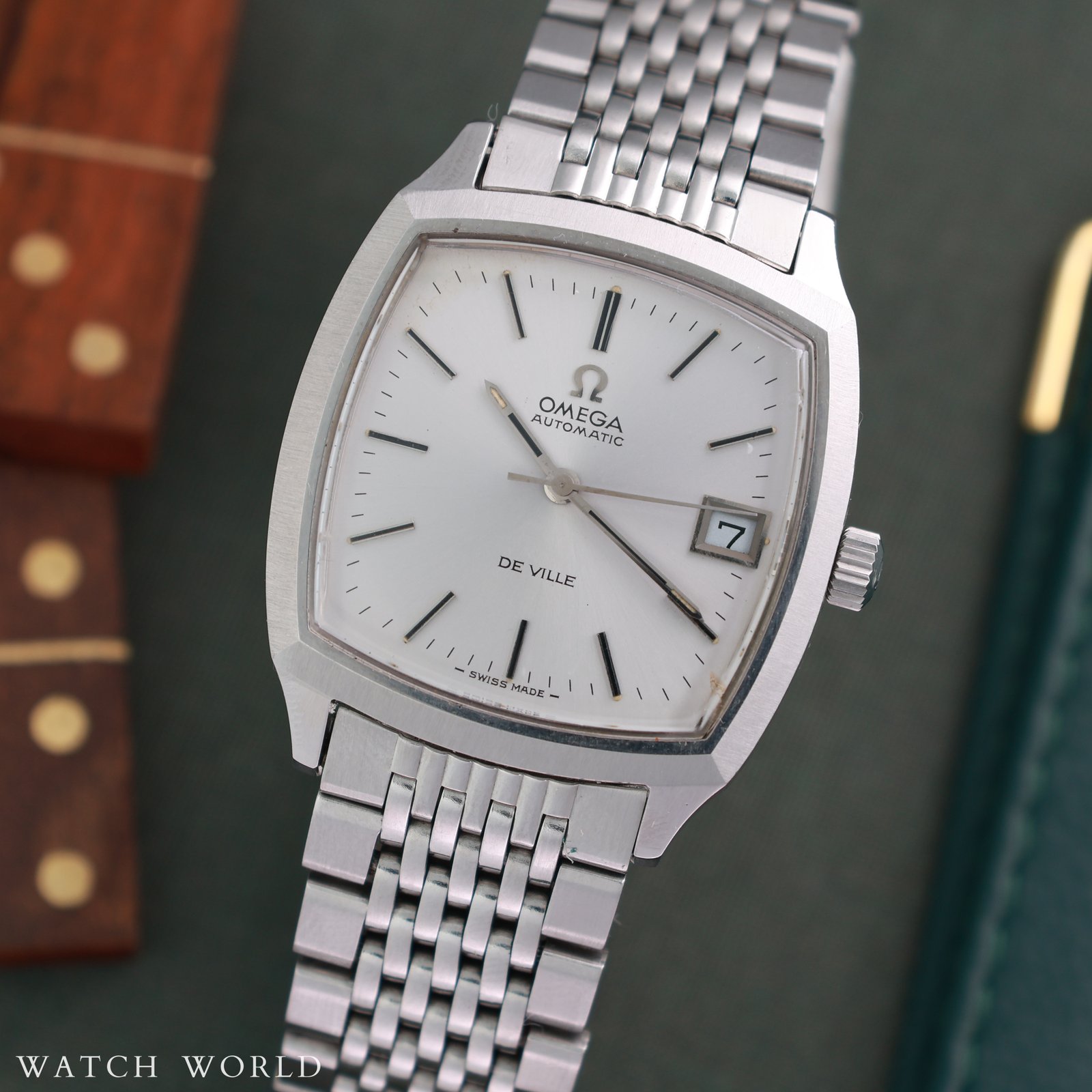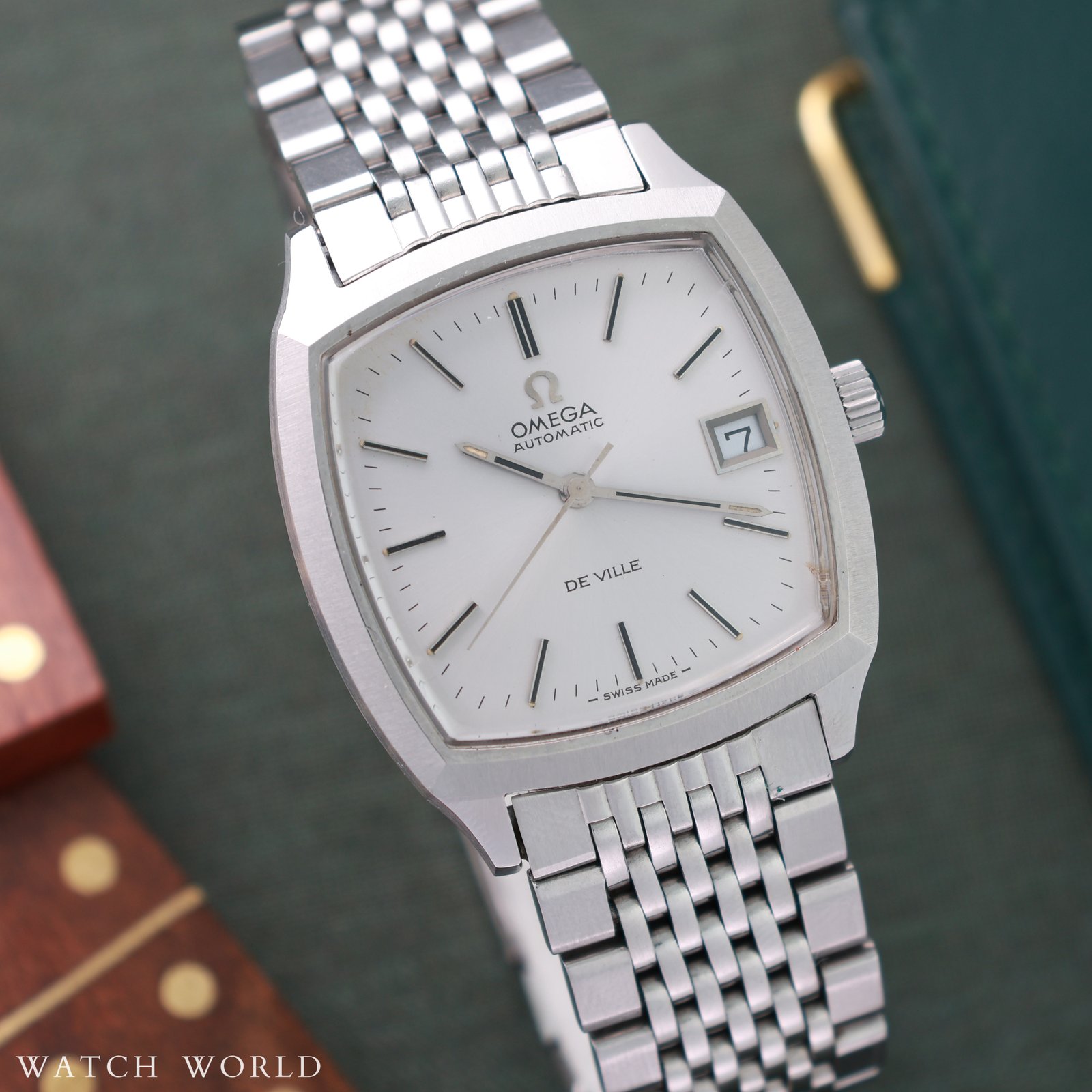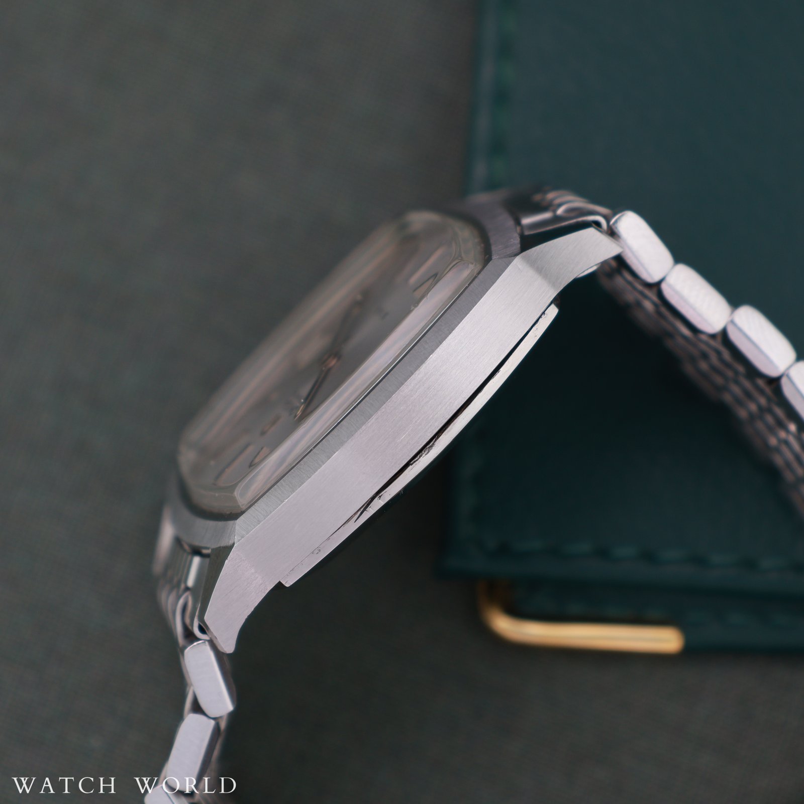 Omega DeVille 166.075 cal. 1002 to elegancki zegarek męski z lat 70. Jego charakterystyczna koperta typu „kostka” wykonana ze stali nierdzewnej ma wymiary 33 × 40 mm, co zapewnia wyważony wygląd na nadgarstku i podkreśla geometryczną estetykę tamtych lat. Tarcza w odcieniu srebrnym ze szlifem słonecznym doskonale współgra z prostymi minimalistycznymi indeksami oraz wskazówkami. Sercem zegarka jest automatyczny mechanizm Omega cal. 1002 słynący z precyzyjnej pracy, objęty 12 miesięczną gwarancją WatchWorld. Całość oferowana jest razem z pożądaną i powszechnie uznaną oryginalną bransoletą typu ziarna ryżu („beads of rice”) w maksymalnym rozmiarze 18.5cm oraz dostarczony razem z firmowym etui podróżnym. Oferta objęta 12 miesięczną gwarancją WatchWorld.