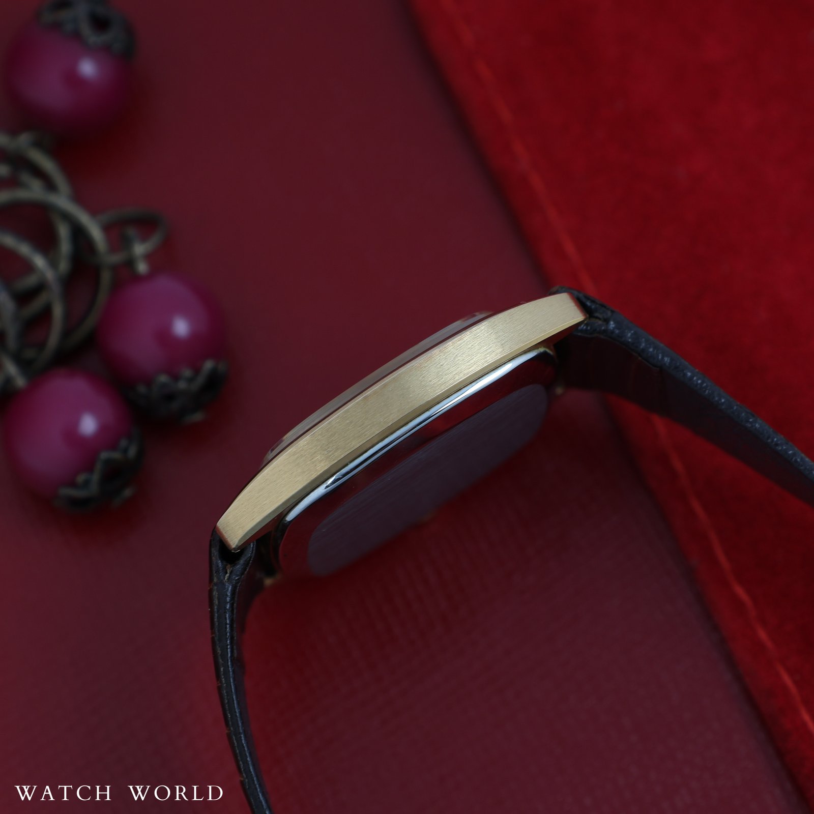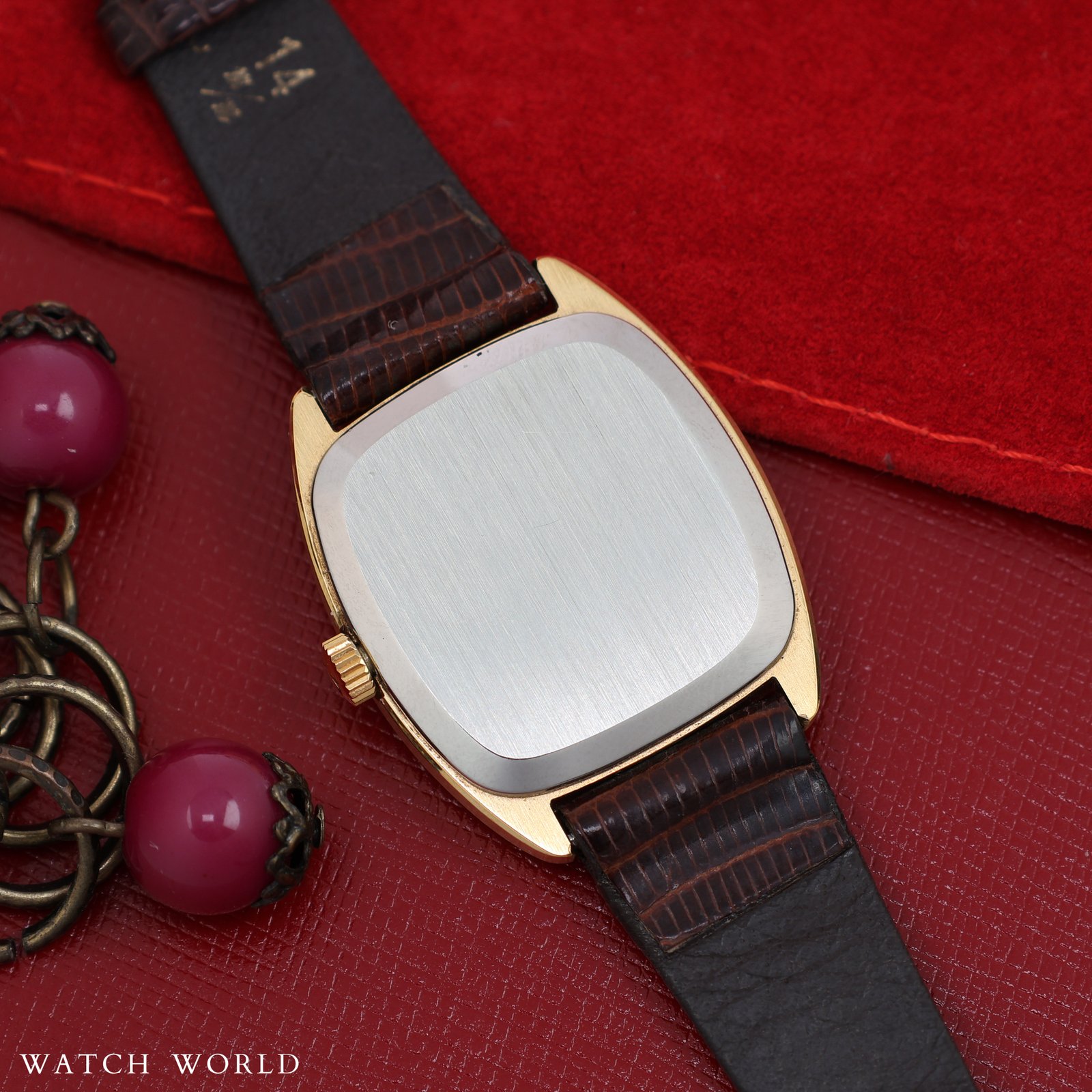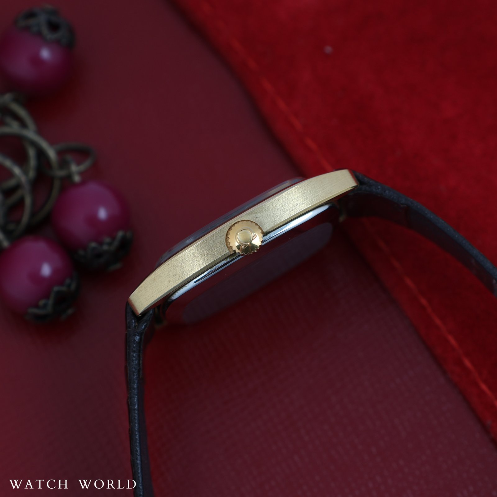 Omega DeVille Roman Lady 511.053 cal. 625 to ponadczasowy zegarek w stylu retro, kwintesencja kobiecego stylu. Pozłacana koperta w rozmiarze 20 x 30mm zachowała się w bardzo dobrej kondycji, przykuwa uwagę piekną charakterystyczną tarczą z rzymskimi indeksami. Zegarek posiada oryginalne logowane szkło oraz koronkę. Wewnątrz pracuje klasowy ręcznie nakręcany mechanizm od Omegi – cal. 625, na bardzo dobrym chodzie. Zestaw sprzedawany jest z nowym, ręcznie robionym wysokiej jakości skórzanym paskiem z pozłacaną sygnowaną klamerką. Zegarek objęty jest 4 miesięczną gwarancją WatchWorld. Dostarczany w firmowym etui podróżnym.