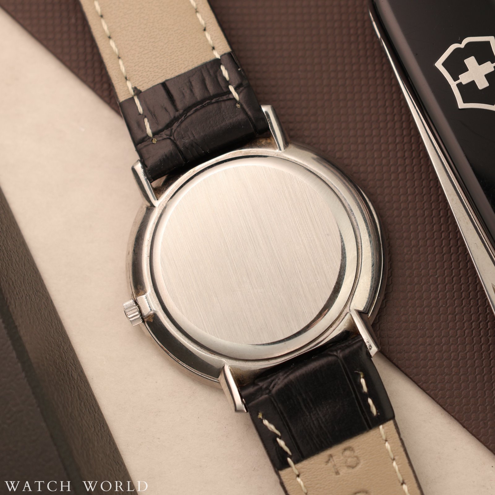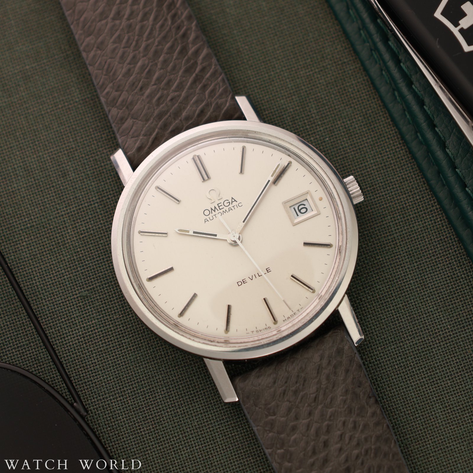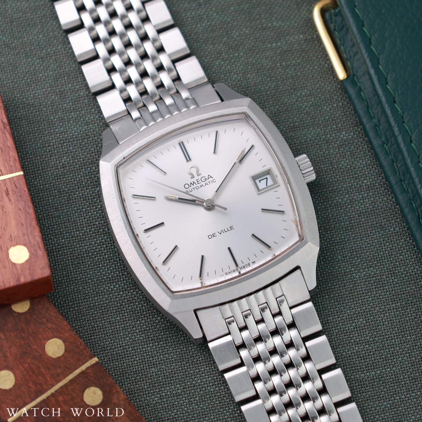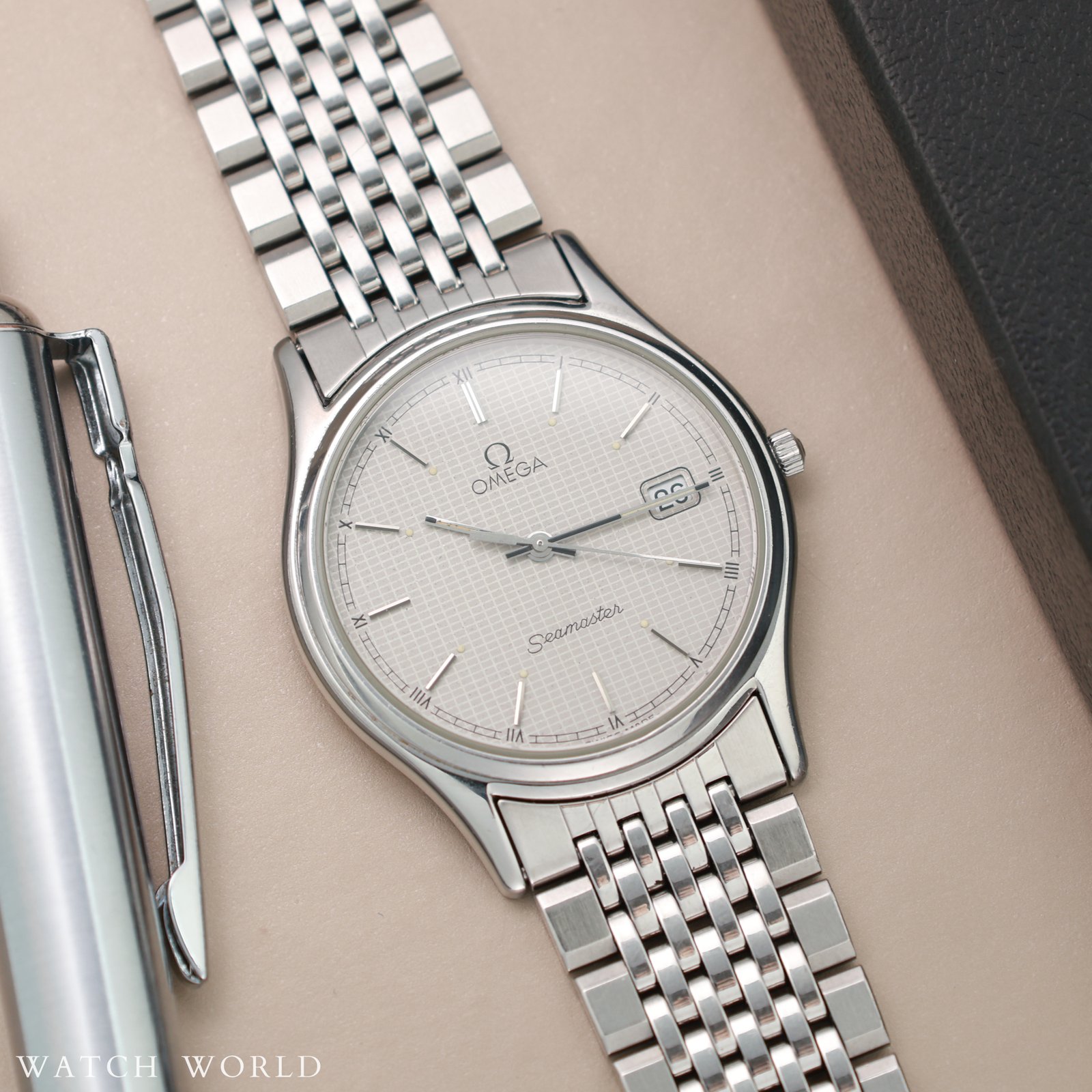 Omega Deville Tapestry Dial 151.0039 cal. 711 to elegancki zegarek vintage z początku lat 70, który wyróżnia się ultra cienką konstrukcją koperty. Zegarek ma wymiary 36 × 38 mm i wykonany jest ze stali nierdzewnej, z klasycznym profilem typowym dla linii DeVille. Najbardziej wyróżniającym się elementem tego modelu jest tarcza typu „tapestry” — ozdobiona pionowym giloszowaniem w kolorze ciemno niebieskim, ten wariant jest zdecydowanie rzadziej spotykany niz pozostałe wersje tej referencji. Wewnątrz zegarka pracuje automatyczny mechanizm cal. 711 słynący z niezawodności i niezwykłej smukłości idealnej do eleganckich, klasycznych zegarków. Mechanizm na dobrym chodzie, objęty 4 miesięczną gwarancją. Zegarek sprzedawany jest na nowym skórzanym pasku, z nieoryginalną klamerką. Zegarek dostarczany jest z firmowym etui podróżnym WatchWorld.