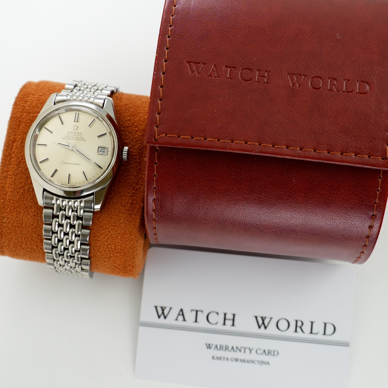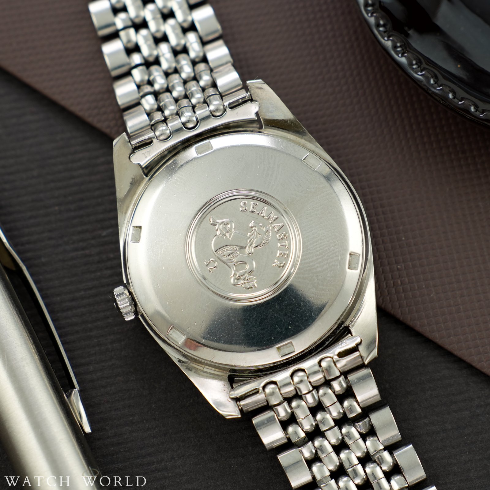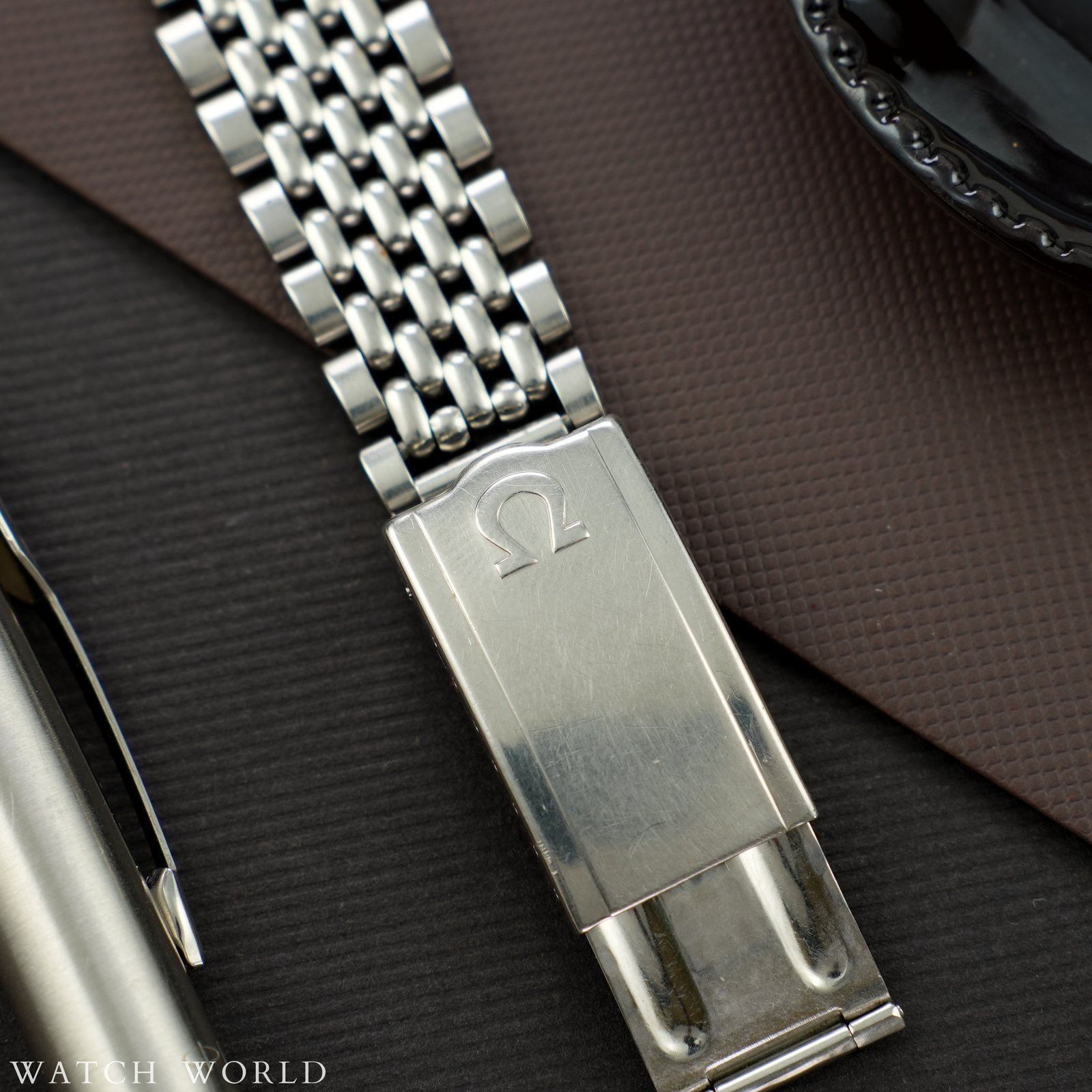 Omega Seamaster ref. 168.024 cal. 564 to sportowy, automatyczny Seamsater z przełomu lat 60 i 70, uchodzący za jedną z najbardziej poważanych referencji z tamtego okresu. Stalowa koperta w rozmiarze 35mm bez koronki połączona razem z jedną z najlepszych bransolet Omegi tzw. beads of rice (BOR) tworzy wyjątkowy, sportowo elegancki wydźwięk zegarka. W środku pracuje niezawodny i szeroko uznany mechanizm automatyczny Omega cal. 564 z funkcją szybkiej zmiany daty, w wariancie certyfikowanego chronometru. Mechanizm po serwisie zegarmistrzowskim. Tarcza srebrna zachowana w świetnym jak na wiek stanie, praktycznie bez śladów starzenia. Razem ze wskazówkami typu dauphine i podłużnymi wysokimi indeksami tworzy spójną, wizualnie czystą formę. Stalowa bransoleta ma długość około 19 cm, zachowana w dobrym stanie, jedynie z powierzchniowymi rysami na zapięciu. Zegarek objęty jest 12 miesięczną gwarancją i dostarczony jest w firmowym etui podróżnym WatchWorld.