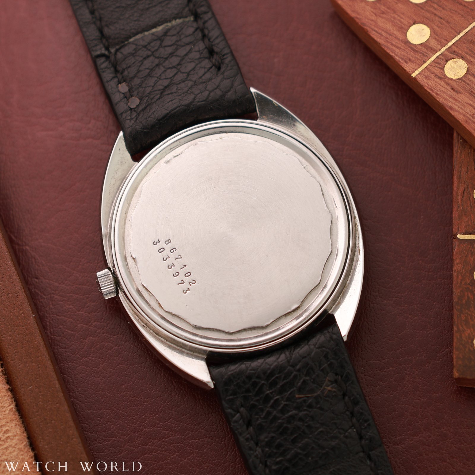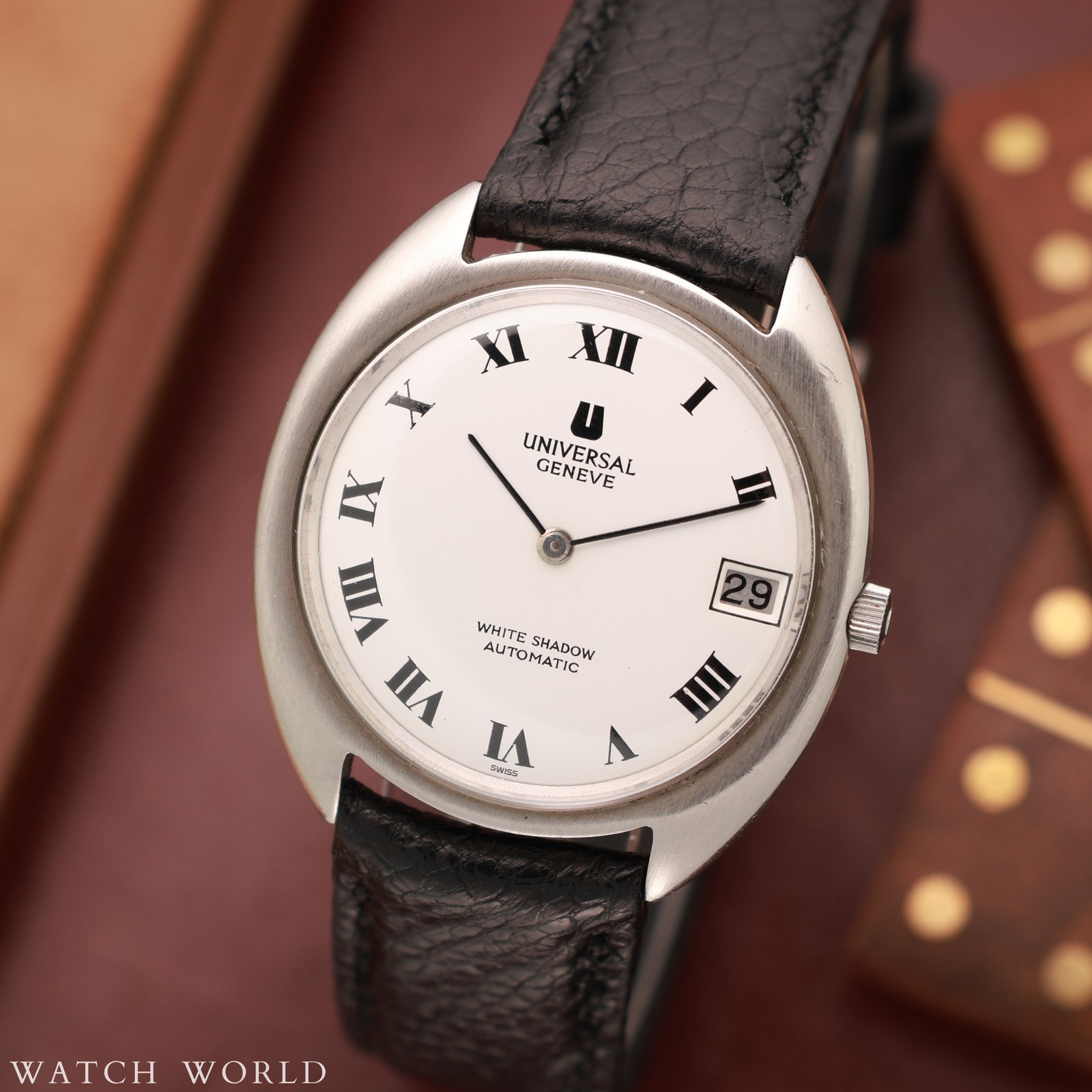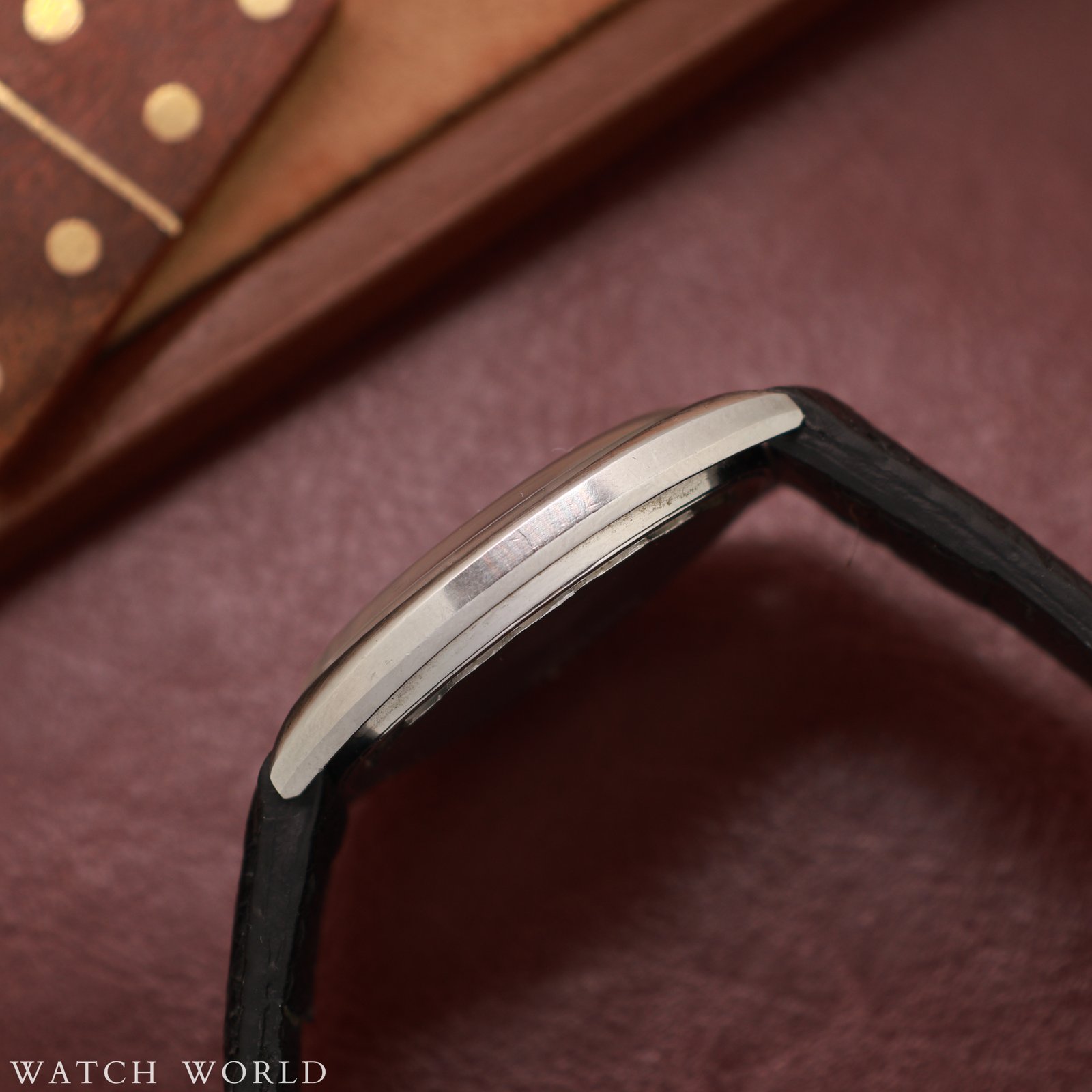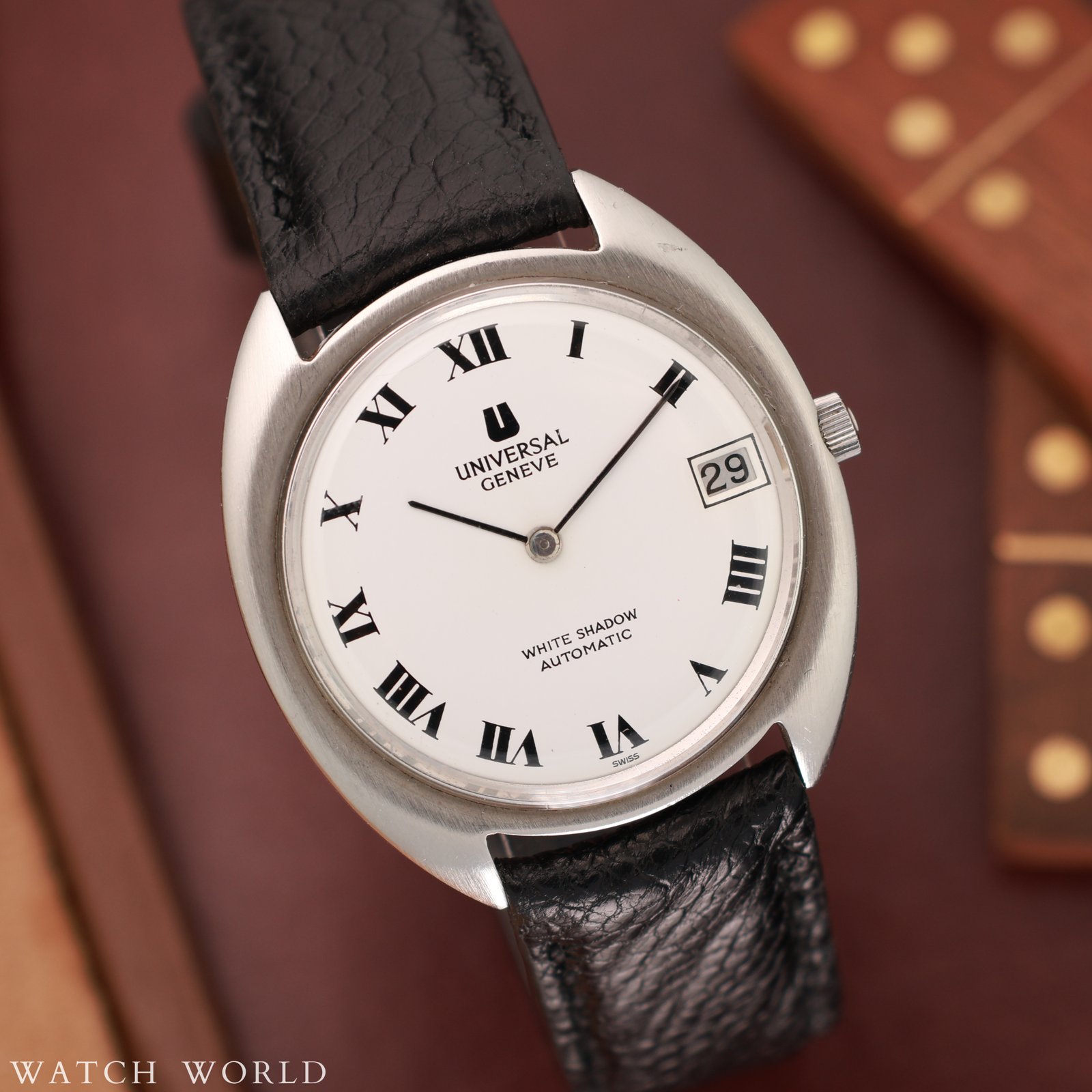 Universal Geneve 867102 Micro Rotor to zegarmistrzowskiej innowacyjności lat 70. Zegarek został zaprojektowany przez jednego z najlepszych projekantów – Geralda Genty, łączy w sobie wysmakowaną stylistykę z unikalnym mechanizmem micro-rotor, co daje mu niezwykle smukły profil. Koperta wykonana ze stali szlachetnej ma zaledwie 7.5mm grubości. Całość dopełnia piękna emaliowana tarcza z rzymskimi indeksami, oraz logowane oryginalne szkło i koronka. W sródku pracuje automatyczny kaliber 2-67 wyjątkowy dzięki miniaturowemu wachnikowi umieszczonemu w płycie zegarka, świeżo po pełnym serwisie zegarmistrzowskim, objęty 12 miesięczną gwarancją. Zegarek oferowany jest z nowym, ręcznie robiony paskiem oraz dostarczony z firmowym etui podróżnym.